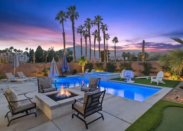 Die Villa bietet eine Essecke und einen Essbereich im Freien mit Ausstattung zur Kaffee- & Teezubereitung. Es gibt auch eine Mikrowelle, eine Kaffee-/Teemaschine und Küchenutensilien, damit Sie sich Ihr eigenes Essen zubereiten können. Von der Villa sind es 39 Minuten mit dem Auto zum Flughafen Palm Springs. Ein Jacuzzi sorgen für ultimative Entspannung. Für die aktive Erholung werden Minigolf angeboten.